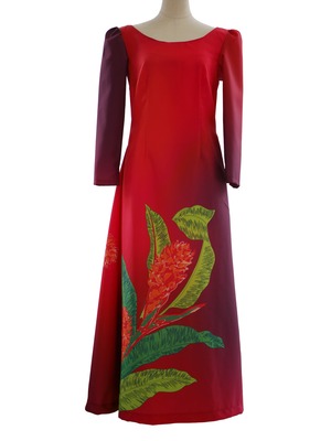 鮮やかな赤に映えるジンジャー柄が特徴の素敵なドレスです。 フレアの入った後ろスカートが、動くたびに美しいシルエットを演出します♪